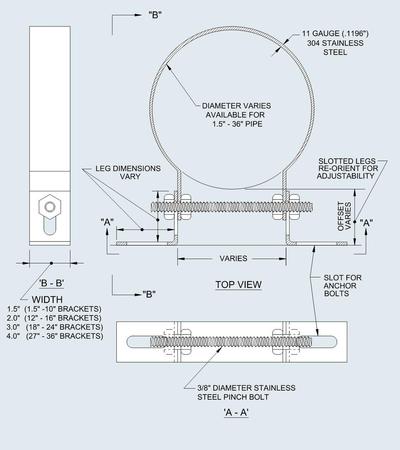 316 SS Pipe Bracket for 21" Pipe 3" wide. Fits SDR 35 |